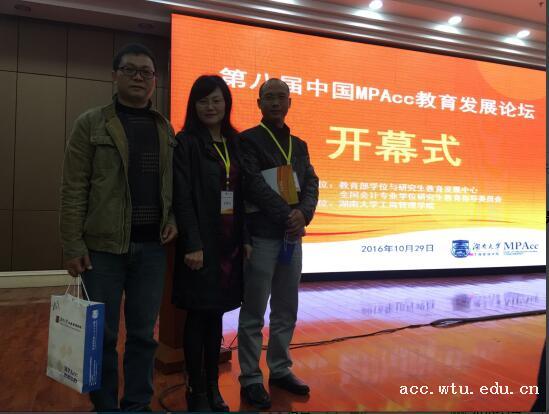 2016年10月28-30日,由教育部学位与研究生教育发展中心、全国会计专业学位研究生教育指导委员会主办,湖南大学承办的第八届中国MPAcc教育发展论坛在长沙顺利召开,9001jcc金沙以诚为本副院长王珍义教授、MPAcc中心主任刘睿智副教授、张耀武副教授一行3人参加了此次论坛。