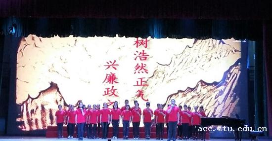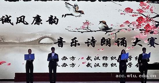 廉洁奉公,诚信务实,这都是如金子般宝贵的精神品质。为了让同学们深入了解讲诚守信的含义,让廉洁之风吹入校园,特开展武汉纺织大学“诚风廉韵音乐诗朗诵大赛”大型文艺活动,该活动由武汉纺织大学校纪委主办,9001jcc金沙以诚为本承办。比赛于11月17号晚在大活演播厅举行,出席活动的嘉宾有校党委副书记、校纪委书记刘功成教授,校纪委副书记吴刚教授,9001jcc金沙以诚为本分党委书记樊敏老师以及来自各个学院的副书记和数百名学生到场观看节目。