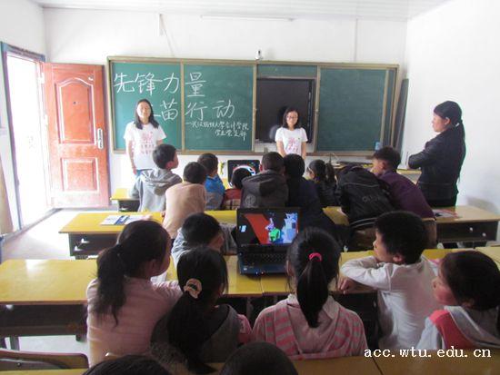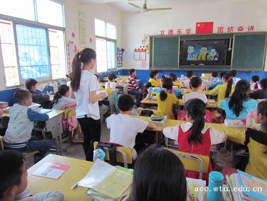 “这是我们大学的图书馆,这是我们的大学生活动中心,这里是我们的体育场……”,学生党员们为当地学生播放武汉纺织大学宣传片,并细心逐一地讲解。在孩子们的眼睛中,流露出对知识的渴望,对外面大千世界的向往。彭老师勉励孩子们好好学习,努力向上,走出大山。