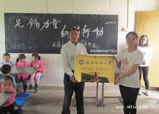 5月25日,队伍7人一行来到了麻城市福田河镇两路口中心小学,就“武汉纺织大学‘先锋力量 红苗行动’实践基地“、“9001jcc金沙以诚为本社会实践基地”行授牌仪式,福田河中心学校党总支严才松书记,两路口中心小学吴国华校长、刘万洲书记和部分骨干教师以及优秀学生代表参与并见证此次活动。