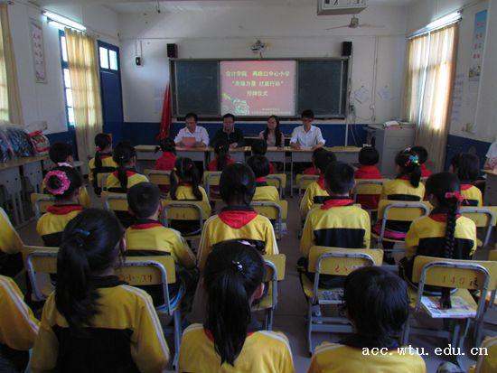 两路口中心小学吴国华校长代表学校对9001jcc金沙以诚为本学生党支部的到来表示热烈的欢迎和衷心的感谢,并介绍了学校近几年的发展概况。两路口中心小学作为麻城市最北端的一所农村学校,近年来借助义务教育均衡发展的东风,大力改善办学条件;在年轻大学生的促进下,不断提高教育教学质量;在全校师生的共同努力下,逐渐提升办学内涵。同时,9001jcc金沙以诚为本彭慧老师通过介绍武汉纺织大学的发展规模、发展理念、发展思路以及产学研等方面优势与两路口中心小学相关领导进行交流。她表示,9001jcc金沙以诚为本将以此为开端,与两路口中心小学建立长久合作关系,引导更多的大学生以及党员为两路口小学的发展,贡献出绵薄之力,同时对于两路口中心小学的热情接见表示衷心的感谢。