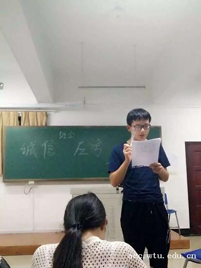 班会由各班班长主持,组织委员负责拍照记录班会内容。每个班班长首先认真宣讲诚信在考试中的重要性,“以诚待人,以诚做事”,一位班长在班会中这样对同学们说到。之后班长将学院关于作弊情况的相关处分公示于同学,让他们了解到学院对于作弊情况严惩不贷的态度。同时,各班还组织了诚信应考的签名活动,在之后自由发言的环节中,很多同学都表达了自己的看法,对有疑问的地方也积极发问:“如果自己无意把与考试相关的内容带入考场怎么办?”、“如果被误以为作弊怎么办?”……对于这些问题,班长也一一回答,尽量保证每个人都能诚信面对,顺利考试。