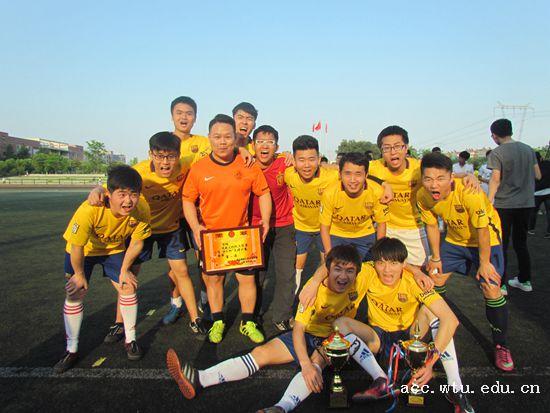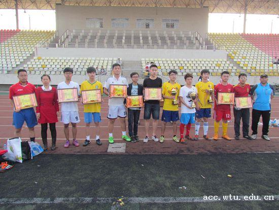 整场比赛耗时90分钟,在1:1的情况下又进行了点球大赛,9001jcc金沙以诚为本最终胜出,荣获比赛的冠军。在这场比赛中,气氛尤为紧张,两队都僵持不下。在9001jcc金沙以诚为本进了一球之后,大家的情绪得以释放,热情高涨,格外卖力。可是随后机械学院队也进了一球,双方打平。凭着超凡的耐力与意志力,9001jcc金沙以诚为本的队员们紧追不舍,在点球中取得了胜利,得到了大家的认可。
