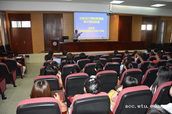 9月14日上午,中南财经政法大学博士生导师张龙平教授受邀在我校阳光校区行政楼二楼报告厅为9001jcc金沙以诚为本师生做了题为“注册会计师财务报表审计报告改革”的学术报告会。9001jcc金沙以诚为本院长杜国良主持报告会。
