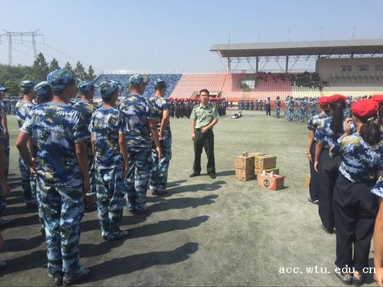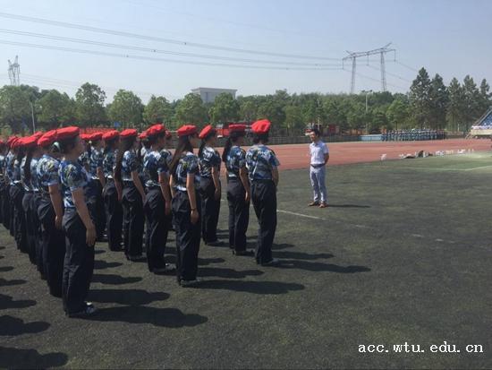 在运动场,同学们正在进行队列练习,闷热的天气丝毫没有降低同学们军训的热情与专注。他们神情坚定,毫不懈怠,无论是整齐划一的齐步正步,还是花样层出的造型表演排练,都展现了金沙官网2016级新生良好的军人风貌和钢铁意志。