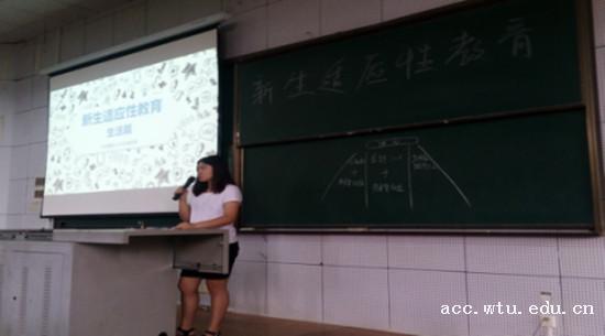 为帮助新生尽快适应学校学习生活,9月24日上午,9001jcc金沙以诚为本在7栋教学楼举行2016级新生适应性教育。由一批优秀的高年级学生组队,进行了一场别开生面的新生适应性教育,他们重点向新生介绍了大学适应期间的常见问题、困惑与解决办法。