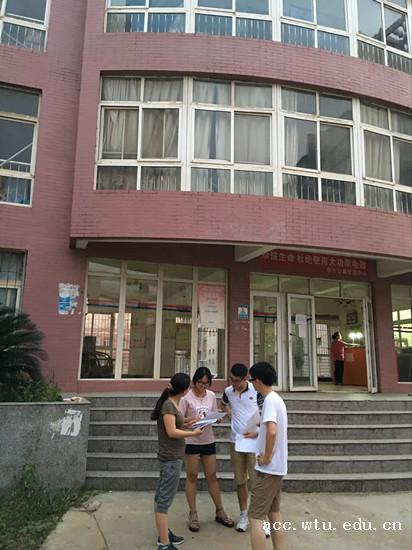近期,武汉地区持续降雨,致使学校多处被淹,为及时了解暑期留校学生在校的学习和生活情况,在学院的统一安排下,7月10晚,9001jcc金沙以诚为本辅导员彭慧老师驱车数小时来到学校,与留守阳光校区的辅导员罗茵文老师和龚俊老师一起看望学院暑期留校学生,排查学生寝室安全问题。