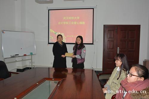 近日,9001jcc金沙以诚为本分党委书记樊敏、9001jcc金沙以诚为本院长胥朝阳、分党委副书记熊敏以及院主要工会委员等参加了由9001jcc金沙以诚为本工会组织的爱心捐赠活动,将全院教职工为学院贫困学子捐赠的爱心资金为学生送上,延续真情,点燃深冬里的火焰,融化冰雪,让学生们倍感温暖。