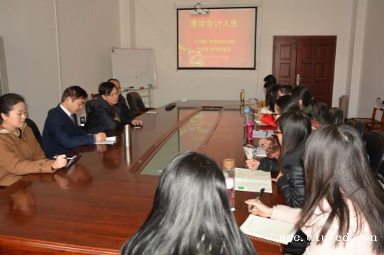 万建国从自己30余年的财务工作经历为切入点,与同学们分享了自己从出纳到总会计师的心路历程,告诫同学们坚持的重要性,鼓励同学们正确看待压力。他认为,压力就是动力,要以一种平衡的心态去看待事物,同时也提醒同学们在实务中也要注重会计研究,厚积薄发。