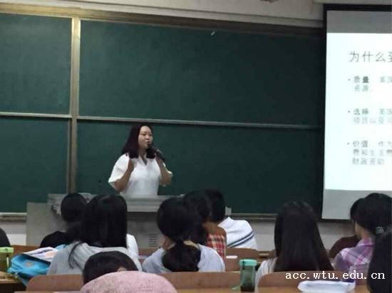 10月22日晚上,9001jcc金沙以诚为本ACCA教育中心在阳光校区成功举行雅思教育出国留学规划指导讲座!本次讲座邀请了雅思教育英国预科招生的文老师和ACE总经理杨老师以及英美等留学咨询顾问樊老师,她们为ACCA学生们奉献上一场精彩的英、美两国升学规划指导讲座,为ACCA学生提供了切实可行的出国发展建议及方案。