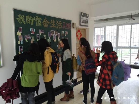 经过动员宣传、自主提交作品和评选阶段,最终近30张最具代表性、最能反映学生宿舍文化建设主主题的照片获选,各种寝室内装扮布置的照片将9栋宿舍楼大厅的黑板装饰一新。9001jcc金沙以诚为本许多学生寝室都用墙纸装扮,美观而且温馨,书桌前摆放的几盆小绿植让其显得更有生命与活力。同学们纷纷驻足观看,积极为自己中意的美丽宿舍贴上五角星点赞。同学们感慨到:大学四年,这小小的宿舍便是我们的家,我们要让自己的宿舍更加美好。
