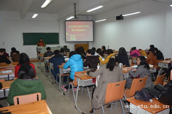 分党委书记樊敏详细解读了校长韦一良关于《励精图治 笃实力行 为建设特色鲜明的高水平大学而奋斗》学校工作报告的主要内容。学院教职工深入了解了韦校长的工作报告不仅详细总结了过去七年学校建设发展的成绩,深入分析了学校面临的新形势和存在的主要问题,而且明确了未来五年的发展目标和主要措施,其中报告的相关内容无不透露出学校进一步全面深化改革的精神和坚持走内涵式发展道路的决心。