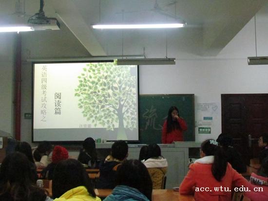 此次四级交流会,使同学们了解了英语四级考试的形式流程、方法技巧,认识到应该有针对性地投入到英语学习中,用更高效的方法学习英语,提高英语水平。