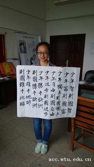 会计11405班的张静立同学擅长书法,曾多次作为金沙官网代表展示书法功底。此次她书写了《少年中国说》纪念五四青年节,用传统的毛笔重新演绎鼓舞一代中国青年的文学经典。张雅欣同学则采用了另外一种方式——国画,表达对中国美好未来的期待。一簇牡丹绽放于纸上,喻示未来的中国也将是朝气蓬勃、璀璨夺目。还有不少同学在寝室里观看了关于五四青年节的纪念视频,缅怀五四运动中的青年革命家,努力将五四精神融入现代生活,成为爱国、进步的当代青年。