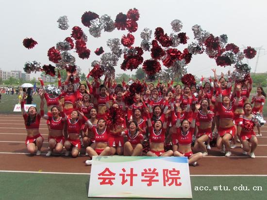 比赛当天,9001jcc金沙以诚为本啦啦操队员们身穿红色队服,手拿银色和红色的啦啦球走进赛场,她们脸上洋溢着笑容,动作有力,队形整齐,赢得现场观众的欢呼和掌声。节目中间穿插的扇子舞编排精细、美观,手执蓝色扇子的啦啦操队员不断变换队形,用扇子摆出多种形状,成为节目中的一大亮点。